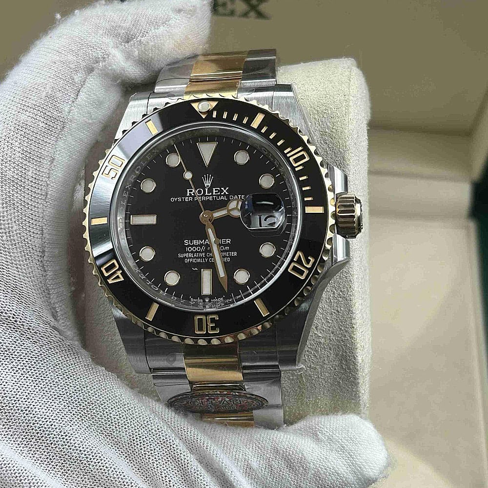風防:透明度と耐摩耗性を象徴とする高反発サファイアを採用しています。正確な高さはセラミックリンクと調和して配置されており、2.5倍のサイクロプス・レンズを備えています。6時のところにはレザー刻印によるロレックス王冠ロゴがあります。